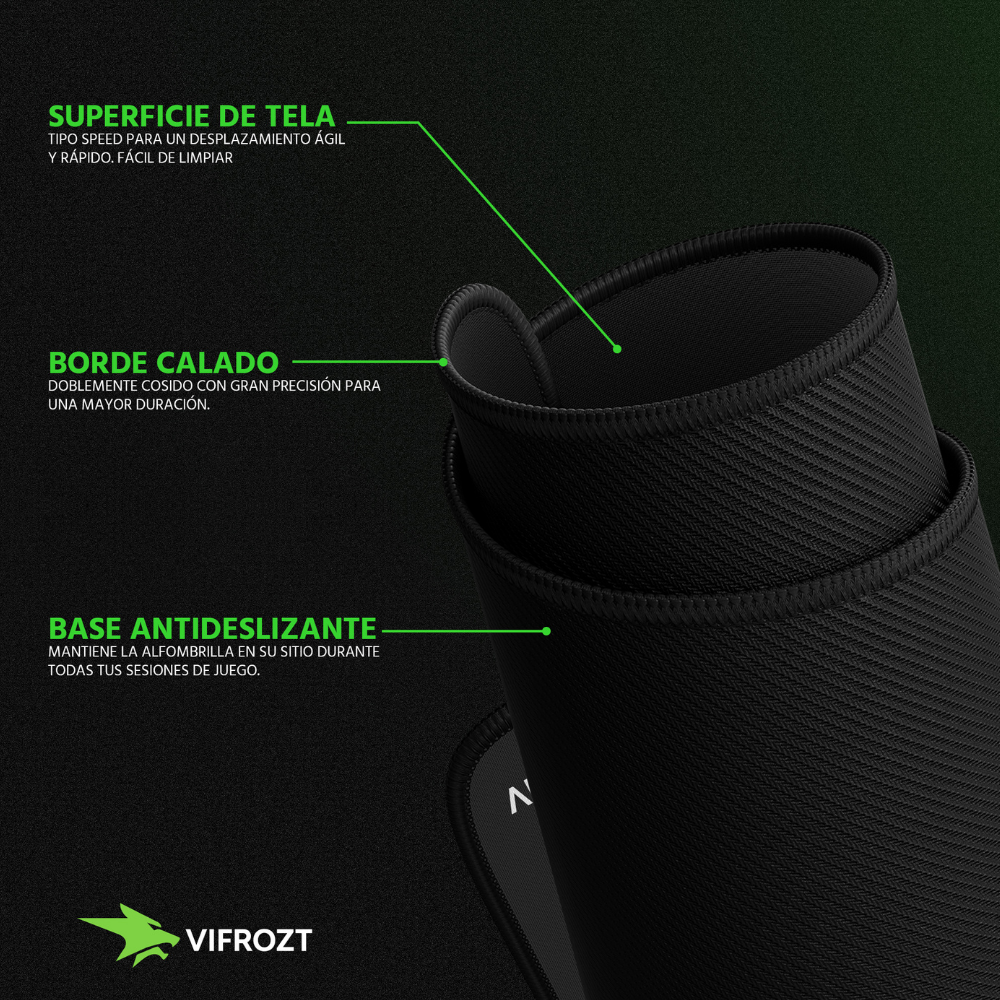 | Construcción: | Base antideslizante para mantener la alfombrilla en su sitio durante todas tus sesiones de juego. Borde calado doblemente cosido con gran precisión para una mayor duración. |