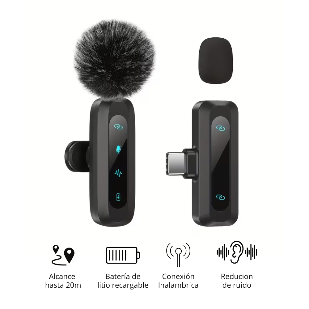 Micrófono inalámbrico J3 con reducción de ruido inteligente y alcance de 20 metros. Es un sistema Plug & Play diseñado para smartphones con conexión USB-C y batería de larga duración. Ideal para grabar vlogs y entrevistas con audio cristalino y total libertad de movimiento.
